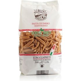 Le penne di farro, solo della varietà Triticum (quello che fa la pasta buona, che tiene la cottura) è coltivato nella filiera agricola biologica italiana IRIS, dal campo alla forchetta. Garantiamo una pasta biologica di alta qualità. I nostri MASTRI PASTAI, dicono che la nostra MATERIA PRIMA È VIVA... il farro è più difficile da lavorare perché sempre diverso, dipende dalla stagione.. così dicono. Il farro è un cereale antico, adatto anche a chi fa fatica a digerire la pasta tradizionale. Quello coltivato dagli agricoltori di filiera IRIS è il più buono per fare la pasta. Potete gustarlo con tutti i tipi di sugo, ma naturalmente anche solo un buon olio extravergine di oliva e il formaggio grattugiato per gustare il suo sapore e profumo intenso.
