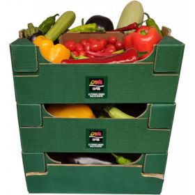 Una casetta mista contiene orientativamente circa: 1, 2 Kg di melanzane lunghe nere, 1 Kg di zucchine bianche, 650 g di peperoni “quattro nasche”, 650 g di peperoni “corno di toro”, 500 g di pomodorini datterini.