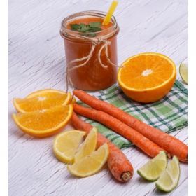 Arance 30%, limoni 20%, carote 20%, zucchero di canna, succo di limone