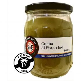 Preparata con materie prime di prima scelta. Ottima per guarnire dolci oppure a colazione su una buona fetta di pane oppure semplicemente per concedersi un momento di dolcezza. Da pistacchio siciliano raccolto a mano, coltivato secondo il concetto di agricoltura naturale e sostenibile, senza l’utilizzo di prodotti chimici. Tenere in un luogo fresco ed asciutto. Dopo l’apertura, si consiglia di mescolare il prodotto e di conservare in frigorifero. Vegano, senza glutine e senza lattosio. Non OGM.