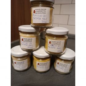 Le patate gialle si presentano con una forma tonda ovale ed una buccia irregolare. Con questa patata si possono realizzare patate fritte, patate al forno, gnocchi, piatti in umido. Essa si presenta con un colore giallo intenso. Alcuni tuberi avendo un maggior quantitativo d'acqua, sviluppano un cedimento della lora consistenza, con conseguente sviluppo di zuccheri che al momento della cottura (frittura) formano una platina di zucchero che impedisce al calore di entrare fino in fondo. Questo produce un 2 fenomeni fastidiosi: 1 - la patata presenta una cottura rossastra esternamente, 2 - rimane cruda all'interno.Le nostre patate, invece, avendo una consistenza con poca acqua, permette:1 - al calore di entrare a fondo e di cuocere la patata in modo uniforme 2 - di non formare nessuna platina di zucchero che impedisce al calore di cuocerla e nessun colore rossastro al momento della cottura.