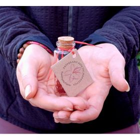 Zafferano essiccato in pistilli interi, raccolto nel 2024, confezionato in vasetto di vetro con tappo di sughero.