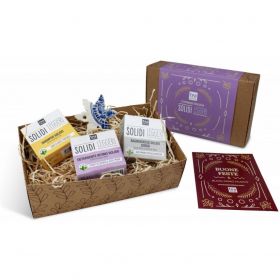 Contiene: 1 Shampoo Solidi Leggeri, 1 Intimo Solidi Leggeri, 1 Bagnodoccia Scrub Solidi Leggeri + cartolina di auguri e dono in ceramica solidale
