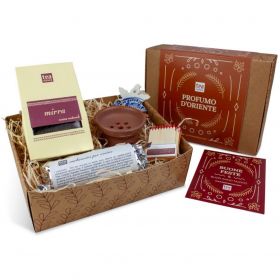 Resina Mirra: ha spiccate proprietà antisettiche, balsamiche, deodoranti, astringenti, antinfiammatorie. Carboncini: ottenuti da materie prime interamente naturali Braciere: realizzato in terracotta è lo strumento ideale per diffondere l'essenza della resina All'interno della confezione, troverai una cartolina di auguri ed un oggetto in terracotta fatto a mano dai bambini del Ce.I.S. di Ancona, associazione che si occupa di accoglienza ed ospitalità attiva di bambini ed adolescenti con situazioni di disagio. Inoltre, potrai personalizzare i tuoi auguri sull'etichetta dedicata!