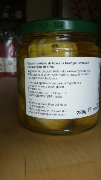 sono Bernardo Girotto e da oltre trentanni coltivo il podere Pian del Noce a Magliano in Toscana (Gr) e sono qui a proporvi i miei carciofi violetto di Toscana sotto olio extravergine di oliva certificati biologici in barattoli da grammi 280 al costo di euro 6,00/cad (minimo 6 pezzi) + spese di spedizione