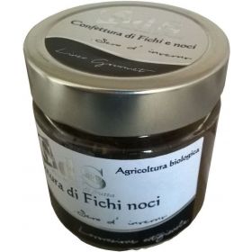 Confettura ottenuta con fichi freschi di stagione, lavorati manualmente e cotti a bassa temperatura. La varietà è tipica dell' areale sud della Basilicata (var. Troiano). Abbinata alle noci riporta il palato alla storia e alle tradizioni del posto, quando era usuale infornare fichi con all' interno gherigli di noci.