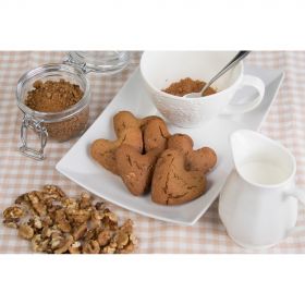Farina di farro integrale, Zucchero integrale di cana Mascobado, Olio extr vergine di oliva, Zenzero, Cannella, Uova, Bicarbonato di sodio, Sale marino integrale