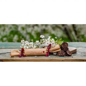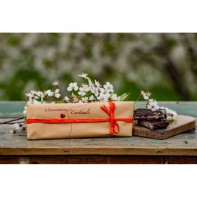 Salamino di Cioccolato con interno di fichi secchi e visciole a pezzi.