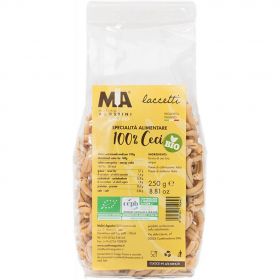 Pasta di ceci macinata a pietra, tralifata a bronzo, essicata a bassa temperatura. I laccetti di ceci sono una valida alternativa alla pasta, moderna e veloce per riscoprire tutti i benefici dei legumi. Una specialità alimentare prodotta con 100% farina di ceci proveniente da agricoltura biologica certificata e sapientemente macinata a pietra. Tra le tanti varianti della pasta di legumi, la pasta di ceci è la più simile alla pasta di grano duro come gusto ed aspetto. Facile da condire e da abbinare ad altri prodotti, con un percentuale rilevante di proteine, carboidrati, grassi e fibre. Le farine di ceci, ottenute da una sapiente macinazione a pietra, vengono lavorate “crude” con tradizionali trafile in bronzo per garantire, insieme ad una lenta essiccazione a bassa temperatura, la perfetta conservazione di tutte le caratteristiche organolettiche.
