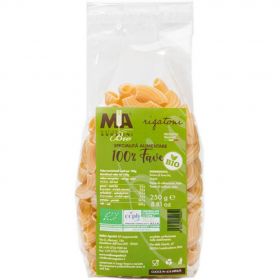 I rigatoni di fave sono una valida alternativa alla pasta, moderna e veloce per riscoprire tutti i benefici dei legumi. Una specialità alimentare prodotta con 100% farina di fave proveniente da agricoltura biologica certificata e sapientemente macinata a pietra. La farina di fave è ricca di fibre e proteine, quasi senza grassi e soprattutto con tanti minerali, come il ferro di origine vegetale. Le farine di fave, ottenute da una sapiente macinazione a pietra, vengono lavorate “crude” con tradizionali trafile in bronzo per garantire, insieme ad una lenta essiccazione a bassa temperatura, la perfetta conservazione di tutte le caratteristiche organolettiche proprie delle fave. Un prodotto naturalmente privo di glutine, ma dal sapore unico.