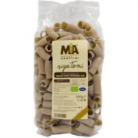 Pasta di semola di grano duro integrale macinata a pietra, trafilata a bronzo, essicata a bassa temperatura. Genuina e buona, la pasta integrale proviene dal chicco completo del grano, ancora puro, non privato cioè dalla crusca e del germe. Questo garantisce al prodotto proprietà decisamente nutrienti. Il germe di grano e ricco di acidi grassi essenziali e antiossidanti mentre la crusca offre molti sali minerali. Tale caratteristiche influiscono positivamente sul nostro intestino e sono utilissime per la prevenzione delle malattie cardiovascolari, oltre a ostacolare colesterolo alto, stipsi, grasso e fame nervosa.