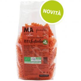 Pasta di lenticchie macinata a pietra, tralifata a bronzo, essicata a bassa temperatura. I fusilli di lenticchie sono una valida alternativa alla pasta, moderna e veloce per riscoprire tutti i benefici dei legumi. Una specialità alimentare prodotta con 100% farina di lenticchie proveniente da agricoltura biologica certificata e sapientemente macinata a pietra. Le farine di lenticchie, ottenute da una sapiente macinazione a pietra, vengono lavorate “crude” con tradizionali trafile in bronzo per garantire, insieme ad una lenta essiccazione a bassa temperatura, la perfetta conservazione di tutte le caratteristiche organolettiche proprie delle lenticchie. Un prodotto naturalmente privo di glutine, ma dal sapore unico. I fusilli di lenticchie sono ideali con le verdure e condimenti leggeri.