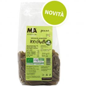 Le penne di piselli sono una valida alternativa alla pasta, moderna e veloce per riscoprire tutti i benefici dei legumi. Una specialità alimentare prodotta con 100% farina di piselli proveniente da agricoltura biologica certificata e sapientemente macinata a pietra. Le farine di piselli, ottenute da una sapiente macinazione a pietra, vengono lavorate “crude” con tradizionali trafile in bronzo per garantire, insieme ad una lenta essiccazione a bassa temperatura, la perfetta conservazione di tutte le caratteristiche organolettiche proprie dei piselli. Un prodotto naturalmente privo di glutine, ma dal sapore unico. Le penne di piselli sono ottime con sughi e pesti di verdure.