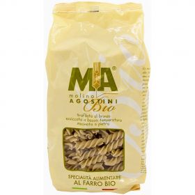 Pasta di farro Dicocco macinato a pietra, trafilata a bronzo, essicata a bassa temperatura. La pasta di farro Molino Agostini è realizzata con varietà del cereale selezionate e coltivate nelle zone limitrofe. Costituisce un’ottima scelta alimentare anche per la ricca presenza di aminoacidi essenziali e per una marcata azione antiossidante dovuta alla componente di selenio e acido folico. Il basso indice glicemico e la scarsa quantità di grassi aumentano i pregi di questo prodotto che andrebbe consumato più spesso abbinato a gustose salse vegetali e ragù tradizionali.