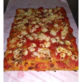 Pizza in teglia + mozzarella, pomodoro, sale.