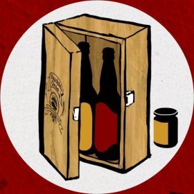 Light wooden box with silkscreen Old Orsa.Contiene 2 bottles of 66 cl. of different styles of beer and a tasty jelly beer Old Bear (100 g) .Elegante and prominent