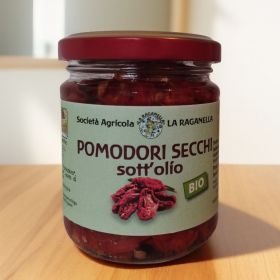 Pomdori essiccati, olio di girasole, aceto di vino, sale, aglio