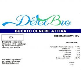 Detersivo bucato lavatrice in tanica da kg. 5 fragranza cenere attiva di colore bianco. Prodotto made in italy e altamente biodegradabile. Dosaggio: ml 55 per kg. 5 di bucato ml 75 per kg. 7 di bucato ml 100 per kg. 9 di bucato