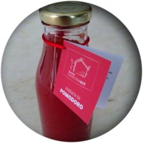Passata di pomodoro densa, pronta all’uso, ottenuta dalla lavorazione di pomodori maturi di varietà miste (Kero, Tales, Roma, San Marzano, Datterini) raccolti a mano, cotti e passati, privi di semi e bucce e privi della componente acquosa.