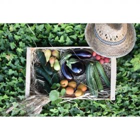 Cassetta di frutta e verdura mista, con prodotti coltivati da noi nel rispetto dell'ambiente e del consumatore, peso di circa 3Kg (raccolti e consegnati in giornata)