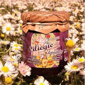 Ciliegie raccolte rigorosamente tutte a mano e trasformate in frutta spalmabile, con zucchero di canna e aceto balsamico di Modena e amido, senza aggiunta di conservanti.