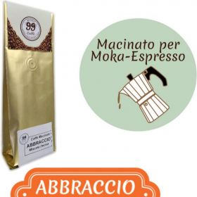 La miscela abbraccio è forte e decisa come un Abbraccio! E' il tipico espresso Bar all'italiana! Caratterizzata da pregiati chicci di Robusta Top Quality che donano corpo e persistenza che contraddistinguono i caffè che sferzano il nostro animo e svegliano il nostro corpo! Una carica di caffeina di cui non potrai fare a meno, propio come un 'Abbraccio'.
