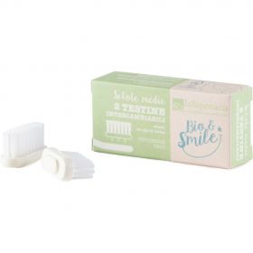 Hai usato al massimo il tuo super spazzoli no Bio&Smile e pensi sia ora di cambiarlo? Non serve! Lo spazzolino in fibre vegetali Bio&Smile, realizzato in acetato di cellulosa 100% naturale e biodegradabile, ti permette di cambiare e sostituire solamente le setole del tuo spazzolino senza buttarlo, andando a ridurre del 92% i rifiuti nel nostro pianeta. Le setole di questa testina di ricambio sono fatte in olio di ricino, perfette per svolgere una delicata azione pulente su denti e gengive garantendo un’igiene perfetta di tutta la tua bocca! Una scelta che farà bene ai tuoi denti, all'ambiente e anche al tuo portafogli! :) SETOLE MEDIE 2 testine per scatola