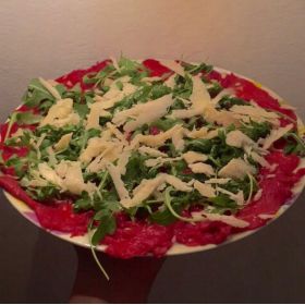 Fetta di manzo, mozzarella, grana padano 36 mesi, pancetta.