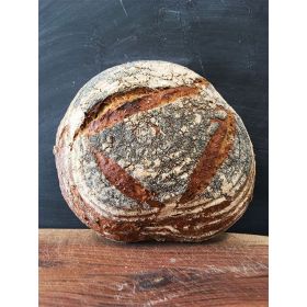 Farina di varietà antiche di grano tenero macinato a pietra tipo “2” Filiera Anticamente 2018 (40%), acqua, lievito madre (20% – farina di varietà antiche di grano tenero, acqua), semi oleosi (8% – sesamo, lino, zucca, girasole, papavero), sale marino naturale.