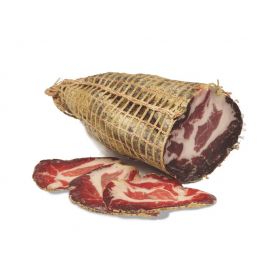 La Coppa è uno dei più importanti salumi della tradizione italiana. È prodotta dalla "coppa" appunto o "capocollo" del maiale. Il taglio è semplice da riconoscere, perchè caratterizzato da un gradevole colore rosa delle parti magre ed è inframmezzato da una inconfondibile marezzatura color bianco perla. Una volta disossate le coppe, vengono salate e conciate con pepe e aromi. Questa operazione si ripete due volte, così da massaggiare la carne, che diventa morbida e saporita. Dopodichè le nostre Coppe vengono messe in sala stagionatura dove riposano 3-4 mesi. Durante il periodo di stagionatura sviluppano gusto, aroma e piacevolezza per il vostro palato. Si consiglia di assaporarla a temperatura ambiente per avere la sicurezza di godere a tutto tondo del suo profumo e gusto.
