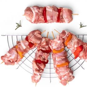 I nostri sono così: carne di pollo, salsiccia*, pancetta e peperoni rossi. La cottura degli spiedini sulla brace sprigiona il profumo tipico delle grigliate estive.