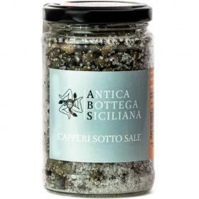 Capperi siciliani sotto sale confezionati in vasetto in vetro sterili. Ingredienti: Capperi siciliani, sale (25%). Lavorazione: I capperi vengono raccolti a mano e successivamente lavati. Infine vengono salati e confezionati. Peso netto: 230 grammi