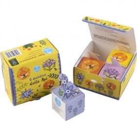 La confezione contiene 4 cubetti. In ciascun cubetto sono contenuti i semi di una singola specie vegetale in quantità sufficiente per coltivare un vaso di 20 cm di diametro per ogni pianta. Le 4 varietà sono: coreopsis, facelia, borragine e tagete.