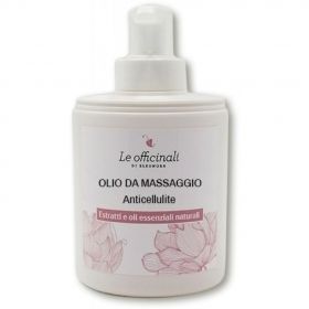 Olio da massaggio anticellulite e drenante a base di edera, arnica, echinacea e calendula con un mix concentrato di oli essenziali quali limone, rosmarino, menta, arancio amaro, ginepro, cipresso e cannella. Applicare preferibilmete dopo la doccia, anche sulla pelle umida, per un effetto anticellulite, drenante e stimolante la circolazione venosa e linfatica.