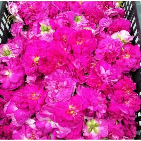 Idrolato di Rosa damascena extra, ottenuto dalla distillazione in corrente di vapore dei petali di Rosa, raccolti a mano. Origine del prodotto: Bulgaria (valle delle rose), produzione di maggio 2024