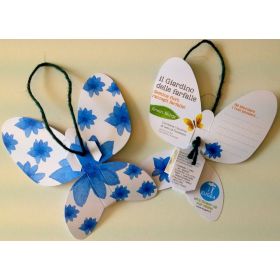 La Green Words Azzurra conserva tra le ali una bustina di semi per piante che attirano farfalle ed è assemblata a mano da persone afferenti a cooperative sociali.