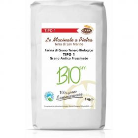 La farina di grano tenero tipo 1 è ottenuta dalla macinazione a pietra di grano tenero biologico; si ha, così, una farina semintegrale, contenente una maggiore quantità di crusca rispetto alle farine tipo 0 e tipo 00, dalle quali si distingue, infatti, oltre che per il colore più scuro, anche per il maggior contenuto in fibre e sali minerali, dunque per il miglior profilo nutrizionale. Tale farina può essere lavorata senza essere tagliata con altre farine e, grazie alle sue caratteristiche, è ideale per la produzione di pane e panini, ma anche di pizza e dolci dal sapore ricercato, caratterizzati da aromi intensi e particolari.