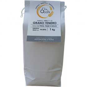 La nostra farina di grano tenero è ottenuta mediante una lenta macinazione a pietra del nostro frumento tenero coltivato in regime biologico. La molitura avviene mediante un molino a pietra che, come ormai ben noto, garantisce caratteristiche nutrizionali ed organolettiche migliori. Grazie a questo metodo la farina mantiene infatti maggiore quantità di crusca e di germe rispetto alle farine raffinate. Questi componenti sono ricchi di antiossidanti e fibre, essenziali per una buona digestione e per il mantenimento della salute intestinale. Ma la differenza è anche nel gusto e nel profumo, che sono più intensi, più caratteristici, e consentono di mettere in risalto le note aromatiche dei nostri grani. Per ottenere la farina tipo 0 è necessario effettuare una setacciatura della farina integrale volta a separare la quasi totalità di crusca e cruschello, in questo modo si ottiene la farina cossidetta "bianca" che è più povera di nutrienti ma più facile da lavorare. Questo prodotto è adatto per tutti gli usi e per preparazioni sia dolci che salate.