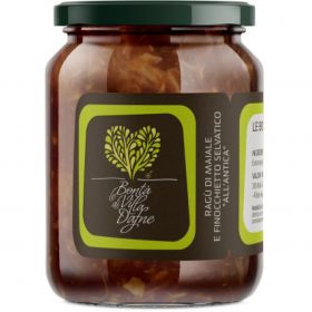 Il Ragù di Maiale e finocchietto selvatico de “Le Bontà di Villa Dafne” è una ricetta della nostra tradizione. La preparazione è lunga e laboriosa e prevede che la carne di maiale venga prima cotta intera nel forno. Una volta cotta la carne viene sfilacciata e messa in tegame con olio extravergine di oliva, sedano, carote, cipolla e l’immancabile finocchietto selvatico. Successivamente viene aggiunta la nostra salsa di pomodoro siccagno e cuoceranno così insieme per almeno altre due ore. Dal gusto intenso e deciso, il Ragù di Maiale e finocchietto selvatico è una ricetta antica, un ragù di quelli che si facevano una volta. Con il nostro Ragù di Maiale e finocchietto selvatico de “Le Bontà di Villa Dafne” riscoprirete il vero gusto e il vero sapore della tradizione. Provare per credere.