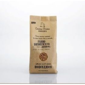 Il farro si suddivide in tre varietà principali (Spelta, Monococcum, e Dicoccum), più altre sotto varietà meno comuni. I primi due sono molto simili al frumento tenero, il terzo molto simile al frumento duro. La particolarità del farro è che trattiene una cuticola aderente al seme anche dopo la raccolta, per questo motivo necessita di un processo di decorticatura prima di essere utilizzato. Questa lavorazione sommata alla bassa produttività, determina un prezzo 3-4 volte maggiore rispetto al frumento comune. La differenza sostanziale tra il farro perlato e quello decorticato e dovuta principalmente alle lavorazioni a cui viene sottoposto. Il farro decorticato subisce solamente la separazione della lolla, la parte corticale esterna priva di particolari pregi nutrizionali, mentre il farro perlato, oltre a quest’ultima lavorazione ne sussegue un’ altra d’abrasione, simile a quella del riso, la quale elimina parzialmente la crusca rendendo il cereale più rapido nella cottura. Il farro è un cereale considerato ad elevato valore biologico, contiene infatti molte vitamine (A, E, C e del gruppo B) nonché sali minerali (Magnesio, Ferro, Calcio) e Zinco. Il magnesio presente in misura elevata, facilita l'utilizzazione dell'insulina e migliora l'attività contrattile dei muscoli, evitando i crampi (molto utile agli sportivi). Modalità d'uso: La versione perlata si cuoce come il riso, la versione decorticata si cucina con i seguenti crismi: Ammollo : 6 ore Tempo di cottura : 50 min Quantità d'acqua/cereale: 2:1