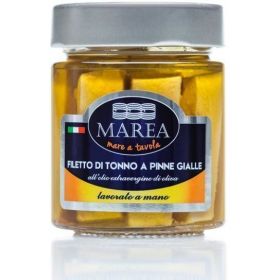 Ingredienti: Filetti di Tonno a Pinne Gialle (Thunnus albacares), olio extravergine d’oliva, sale. Metodo di conservazione: Dopo l’apertura della confezione conservare in frigo e consumare entro 2 giorni. Valori nutrizionali: valori medi per 100 g di prodotto sgocciolato: Energia in kj: 832 Energia in kcal:199 Grassi: 10.7 g di cui acidi grassi saturi : 1.6g Carboidrati:0 g di cui zuccheri:0g Proteine:21.5 g Sale: 0.24g
