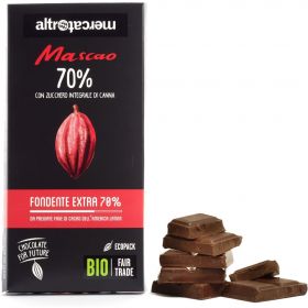 Mascao è la tavoletta di cioccolato biologico per eccellenza, in puro fondente extra con crispies di quinoa e riso soffiato, per una croccantezza che non stanca mai. Un vero classico da gustare a tutte le ore.