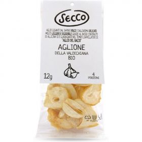 Aglione valdichiana essiccato o Aglio del bacio Made in Italy - Confezione da 12g Aglio bio - Aglione toscano utilizzabile come l’Aglio in polvere o reidratato per varie pietanze Sapore delicato: Conosciuto come "aglio del bacio", l'Aglione della valdichiana ha un sapore delicato il che lo rende adatto a cucinare svariate tipologie di pietanze. Ingrediente tradizionale toscano: È diventato un ingrediente indispensabile nella preparazione del tradizionale sugo toscano, offrendo una versione leggera e pratica per tutte le pietanze salate. Mantiene le caratteristiche dell'aglio: l'Aglione val di chiana mantiene le caratteristiche organolettiche, nutrizionali e salutistiche dell'aglio, senza appesantire stomaco e palato. Alta digeribilità: L'aglione della Valdichiana, grazie alla quasi totale assenza di allicina, è altamente digeribile, evitando problemi di cattiva digestione e alito cattivo. Versatile in cucina: L'Aglione è facile da usare e può essere utilizzato in svariate preparazioni culinarie, tra cui aglio olio e peperoncino, soffritto, marinature, sughi, pesti, come spezia a fine cottura, garlic bread e guarnizioni salate, offrendo un'alternativa saporita all'aglio tradizionale senza controindicazioni.