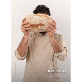 Pane non certificato bio prodotto con farina di grano antico Gentil Rosso (produzione interna certificata bio dall'anno prossimo e pertanto in conversione) e Bolero tipo 0 (con metodi biologici di Sbrulen Bio) entrambe macinate a pietra. Lievito madre, acqua di Carpegna, lievito di birra 1% e un pizzico di sale. Filoni di 0, 5 Kg, il peso effettivo si conoscerà solo al confezionamento. Consegnato dentro sacchetto di cartaper scrivere una recensione