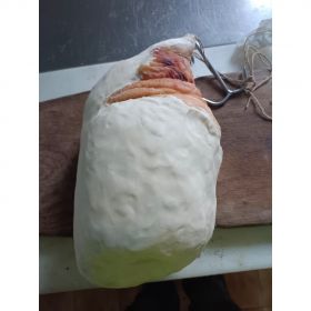Parte di coscia del maiale marinata nel sale periodo di asciugatura di circa 20gg, aromatizzata ed infine sugnata.