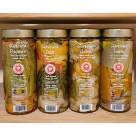 Box assemblata con un barattolo di giardiniera 520/310g per ogni stagione: Autunno, Inverno, Primavera ed Estate