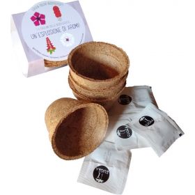 La confezione contiene: 4 bustine di semi: Garofano cinese, Ipomea, Violacciocca, Salvia splendens nana 4 vasetti di 150ml di fibra di cocco per la semina iniziale. Dopo qualche settimana è consigliato il trapianto in un vaso più grande.