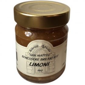 Marmellata di limoni 100% siciliani, coltivati nelle colline trapanesi, priva di conservanti e addensanti. La nostra marmellata di limoni siciliani è preparata seguendo la classica ricetta che ci hanno tramandato i nostri nonni: polpa, scorze di limone e zucchero e succo di limone. Utilizziamo solo limoni di varietà “Zagara Bianca” Ingredienti: Polpa di Limone (56,66%), Zucchero (33,33%), Scorza. Lavorazione: I limoni vengono raccolti a mano, lavati, sbucciati e tagliati a metà. Successivamente la polpa di limone viene cotta in pentola con l’aggiunta di zucchero. Peso netto: 220 grammi