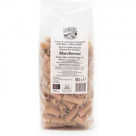 I maccheroni di grano duro, sono prodotti con una miscela di grani scelta da noi con cura ad ogni nuovo raccolto per garantire un prodotto ad alto valore nutrizionale e con una tenuta di cottura ottimale. I grani duri sono coltivati direttamente all’interno della filiera agricola biologica italiana Iris composta da agricoltori e contadini italiani ed anche da Iris Coop Agricola a Calvatone. Tutta la lavorazione risponde pienamente alla metodologia tradizionale, con impasto a freddo e trafilatura al bronzo, al fine di ottenere una pasta gradevolmente più ruvida e porosa, ideale per assorbire ed esaltare i sughi. L’essiccazione è effettuata con basse temperature e tempi lunghi, senza quindi danneggiare i pregiati contenuti della semola. La pasta IRIS di semola è adatta alla cottura per il catering - sia abbattuta che trasportata e cotta 3 minuti..