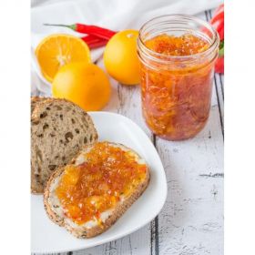 Dalle arance più belle coltivate nei Campi Flegrei ecco la marmellata dal gusto grintoso che conserva tutta la fascia aromatica, con le bucce e i pezzi di frutto. Ottima per la prima colazione (spalmata sulle fette biscottate, con il pane, con i cereali e lo yogurth, sulla ciambella), per guarnire dolci, per accompagnare formaggi e per tutte le idee che la fantasia vi suggerisce. Le arance vengono raccolte e trasformate in brevissimo tempo per mantenere inalterata la freschezza dei frutti. Il processo di trasformazione adottato consente di preservare buona parte delle proprietà nutrizionali del frutto oltre al gusto. Leggere il lotto di produzione sarà indicativo del periodo di raccolta e lavorazione, infatti è priorità della nostra produzione non cambiare l'identità del frutto a seconda della stagione di raccolta e lavorazione: l'arancia infatti cambia caratteristiche, seppur di poco, nei vari mesi in cui è disponibile per questo grazie ad un approccio responsabile e professionale di produzione, il consumatore potrà gustare una marmellata di arancia che non sarà mai la stessa.